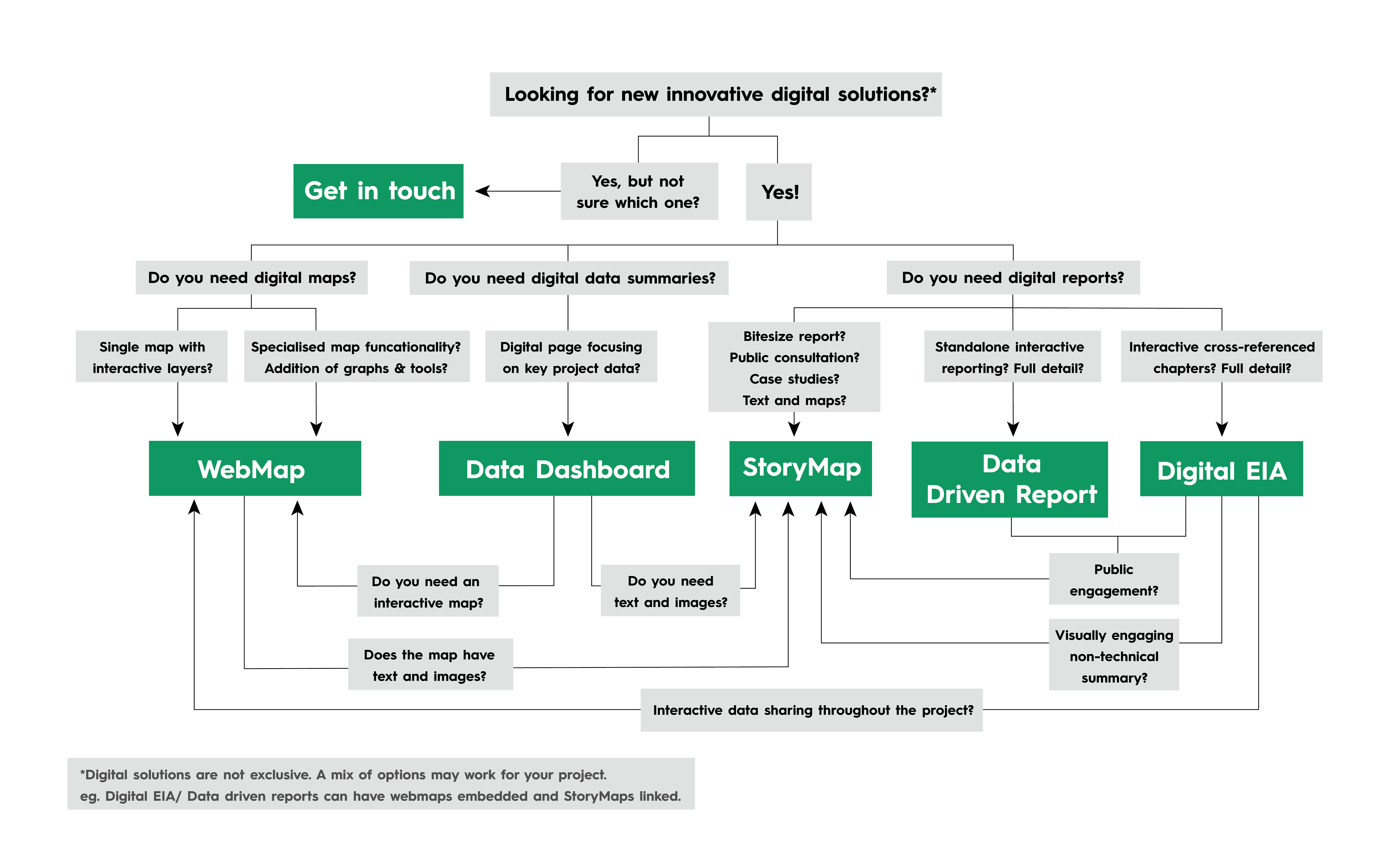 Digital Environmental Impact Assessment – All or part of an onshore or offshore environmental impact assessment can be generated in a digital format using a range of tools to facilitate stakeholder engagement and interpretation of the assessments provided within the EIA.